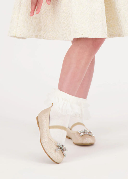 Angel's Face Girls Gold Sparkle Shoe with Crystal Diamante