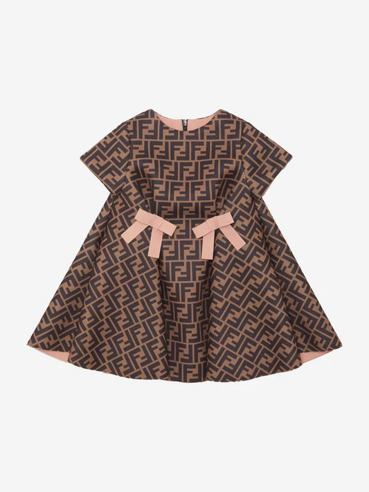 NEW!! FENDI Baby Girls FF Logo Dress in Brown