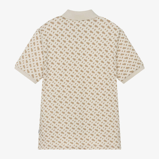 NEW!! BOSS Boys Beige Monogram Cotton Polo Shirt