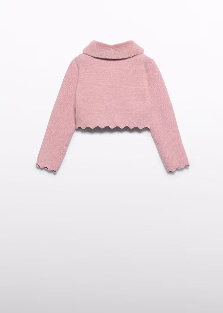 Abel & Lula - Girl Pink Knit Cardigan with Faux Fur Collar