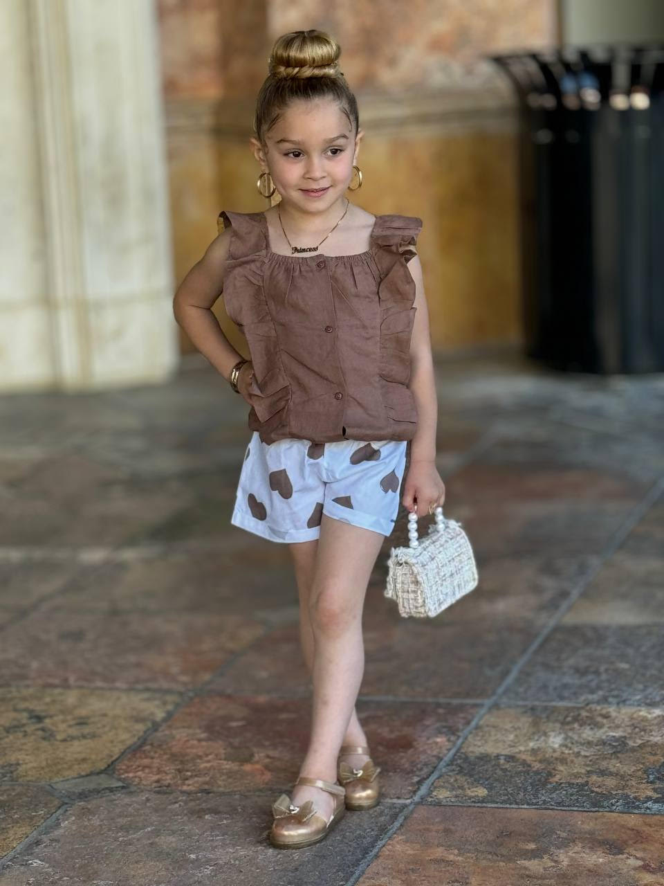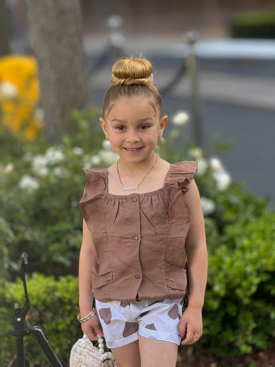 EMC Girls Ruffle Sleeve button-front Top and Patterned Short Set