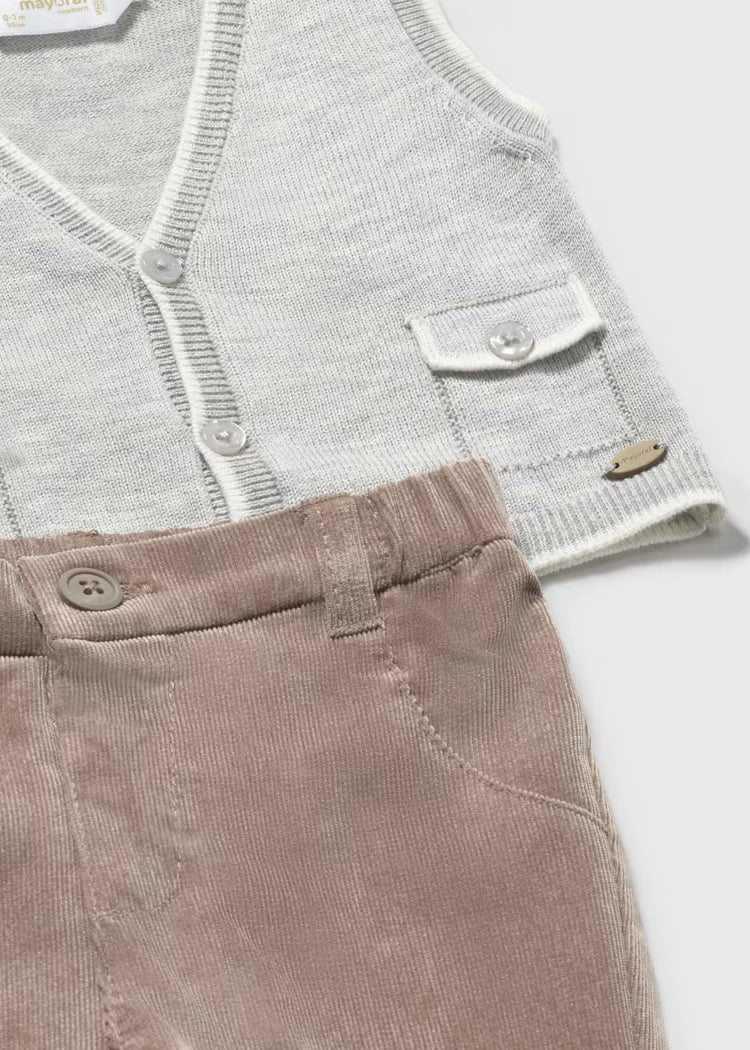 Outfit your little one in classic sophistication with this Three-Piece Newborn Boy Set in Frosted Almond. Combining elegance and practicality, this set gives a timeless, coordinated look.