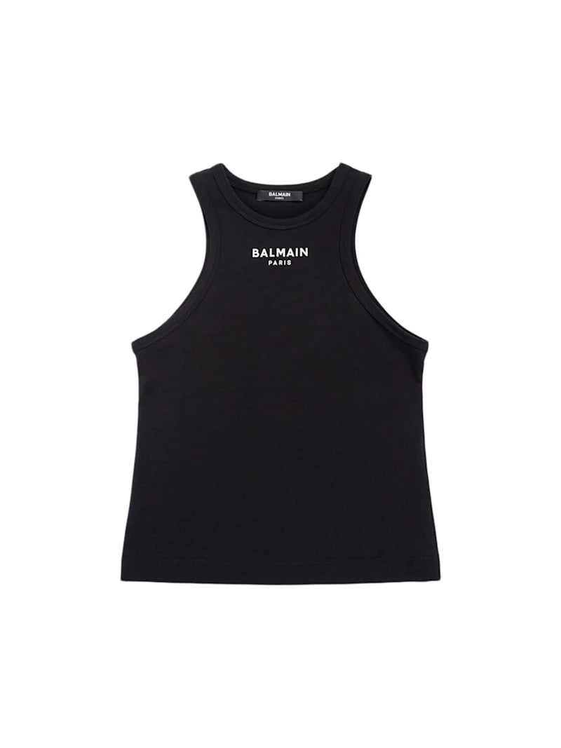 NEW!! Balmain Kids Logo cotton-blend tank top