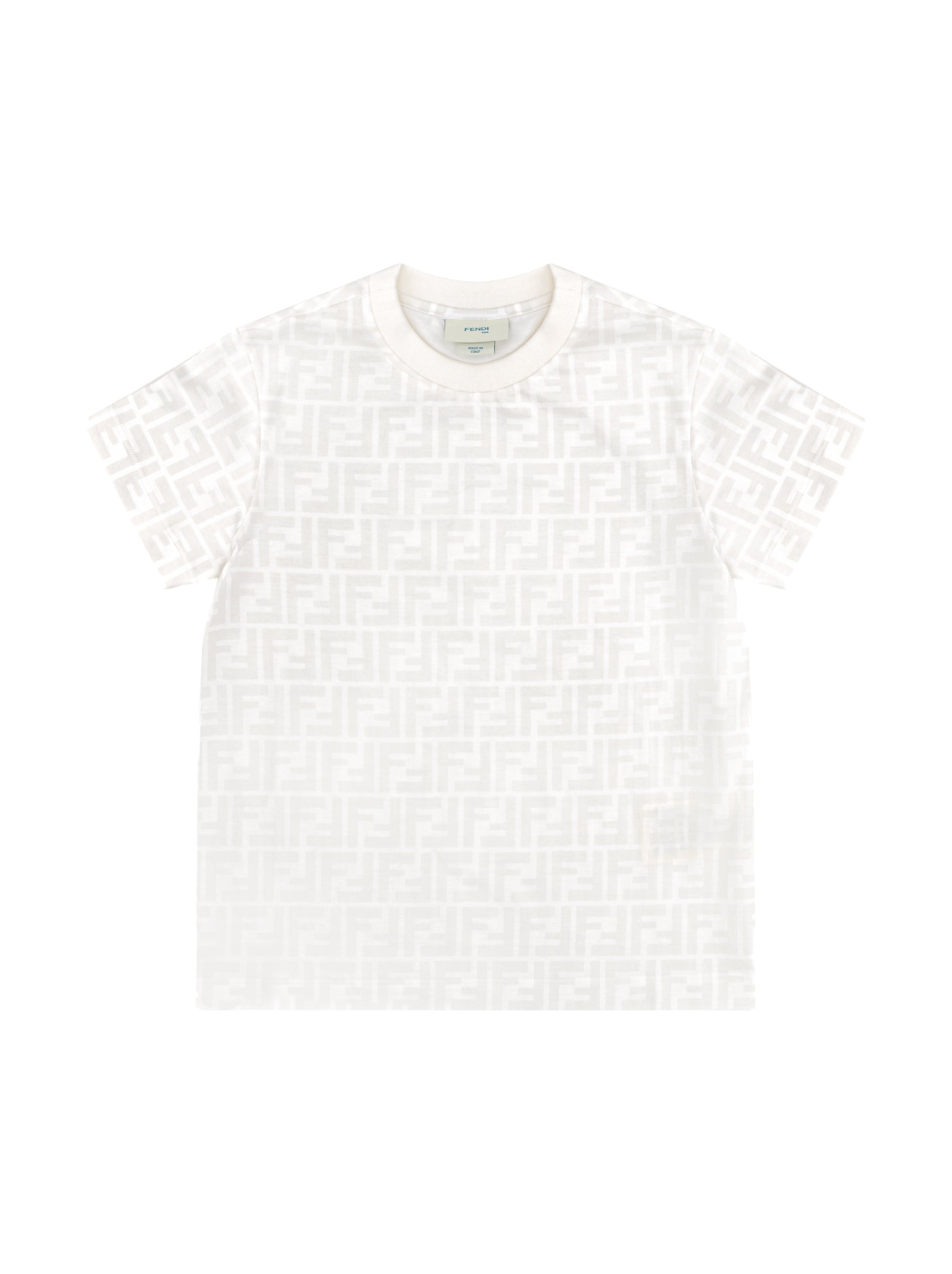 - White jersey junior T-shirt with tone-on-tone all-over FF logo.